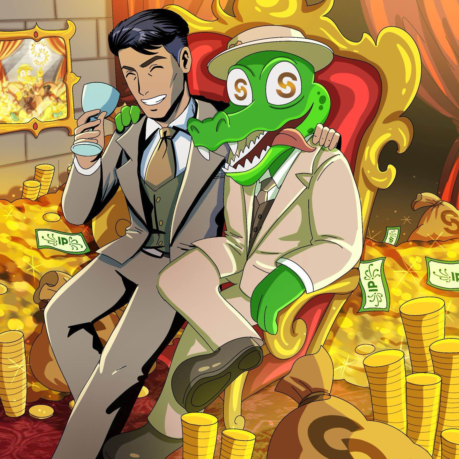coins, leather collars, and a throne made of failed rugpull tokens. Now